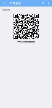 第二步:在“交费信息”页面下拉至底部点击“在线交费”,使用微信扫码“在线交费”页面的交费二维码跳转到“网络自助缴费平台”。
